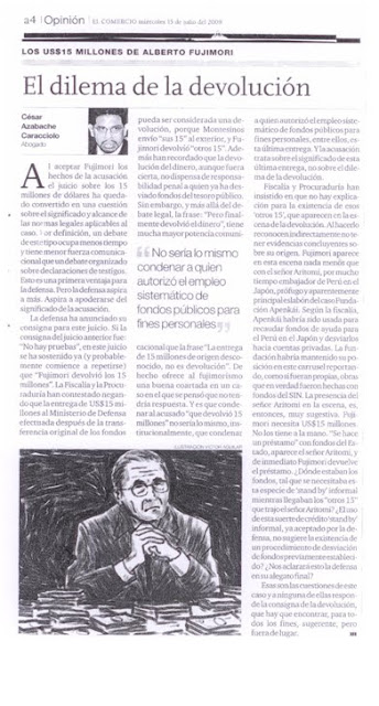 El dilema de la devolución César Azabache Caracciolo Al aceptar los hechos de la acusación, el juicio sobre los 15 […]