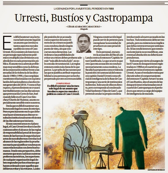 LA DENUNCIA POR LA MUERTE DEL PERIODISTA EN 1988 Urresti, Bustíos y Castropampa Por César Azabache Caracciolo Es difícil sostener
