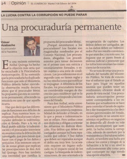 Para una Procuraduría permanente César Azabache En una reciente entrevista Aníbal Quiroga ha hecho la objeción más seria que he