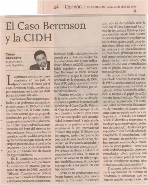 El Caso Berenson y la CIDH César Azabache C. La primera semana de mayo comienza, en San José, el juicio