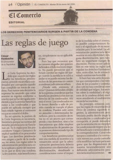 Las reglas de juego César Azabache La Corte Suprema ha decidido que, usando las reglas de los beneficios penitenciarios, procede