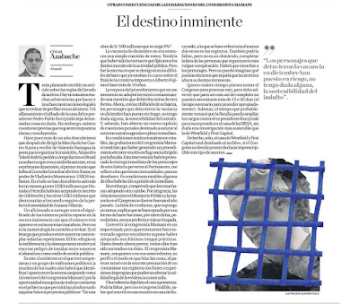 OTRAS CONSECUENCIAS DE LAS GRABACIONES DEL CONGRESISTA MAMANI El destino inminente Tenía planeado escribir un artículo sobre las reglas del